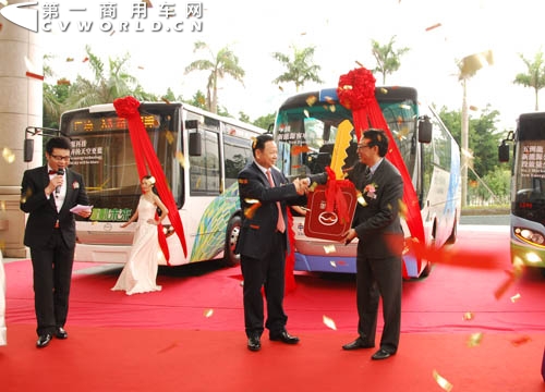 2012年3月16日,主題為“電動(dòng)未來(lái)”的2012深港澳純電動(dòng)客車(chē)技術(shù)交流會(huì)暨五洲龍新品發(fā)布會(huì),在深圳市新能源汽車(chē)研發(fā)中心即五洲龍(集團(tuán))總部隆重召開(kāi)。來(lái)自深圳、香港、澳門(mén)三地的政府相關(guān)主管部門(mén)領(lǐng)導(dǎo)、業(yè)內(nèi)專(zhuān)家、學(xué)者及運(yùn)營(yíng)單位代表共同出席了此次盛會(huì)。針對(duì)港澳地區(qū)市場(chǎng),五洲龍公司在大會(huì)上同時(shí)推出了三款新型純電動(dòng)大巴車(chē)型,其中包括新一代A10純電動(dòng)公交大巴、E10純電動(dòng)旅游大巴及B10純電驅(qū)城市公交大巴等車(chē)型,并正式交付香港客戶(hù)。