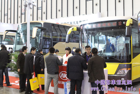2012年3月23日—25日,2012第十二屆中國(南京)國際客車及零部件展覽會在南京國際博覽中心盛大開幕。本次盛會云集了國內(nèi)主要客車及零部件廠家、全國多個城市的大型公交集團(tuán)和旅游客運(yùn)企業(yè),是2012年全面展示我國旅游客車、城市公交客車行業(yè)技術(shù)和市場趨勢的重要平臺。安徽安凱汽車股份有限公司攜HFF6121G03EV純電動公交車和HFF6110LK10D團(tuán)體客車,以綠色節(jié)能為主題參展本次大會。