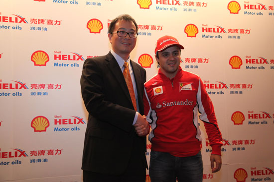 殼牌中國集團(tuán)大陸及香港地區(qū)潤滑油業(yè)務(wù)總經(jīng)理沈堅同F(xiàn)elipe Massa合影