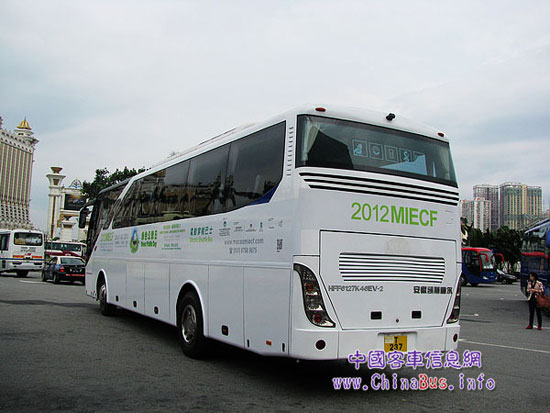 2012年3月29日至31日,由澳門特別行政區(qū)政府主辦的“2012年澳門國際環(huán)保合作發(fā)展論壇及展覽”(以下簡稱2012MIECF)在澳門威尼斯人酒店會展中心隆重舉行,會展主題為“綠色經(jīng)濟——增長新動力”。3月31日,主辦單位安排了“綠色公眾日”項目,安凱兩款純電動客車成為澳門市民體驗日的專用穿梭用車,實現(xiàn)了中國純電動客車首次澳門示范運行。
