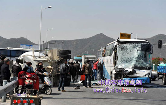 2012年3月24日13時(shí)許,浙江省甬舟高速定海雙橋出口信號(hào)燈路口處發(fā)生一起交通事故,1輛開往定海的青年牌客車與1輛高速行駛的水泥攪拌車迎面相撞?蛙嚦仪皞(cè)損壞其他完好,水泥攪拌車側(cè)翻,客車駕駛員及8名乘客受傷。
