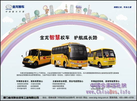 根據(jù)統(tǒng)計(jì)分析,超過90%的校車安全事故都是由于違規(guī)違章駕駛、超速超載和運(yùn)營管理混亂等人的行為和管理因素造成的,針對校車運(yùn)營管理問題,2011年底,大金龍與上海創(chuàng)程車聯(lián)科技有限公司(金龍汽車集團(tuán)旗下企業(yè))聯(lián)合開發(fā)出“智慧校車運(yùn)營管理系統(tǒng)”,該系統(tǒng)通過對學(xué)生、家長、學(xué)校、司機(jī)、營運(yùn)單位和主管部門這六個維度的管理,提供并實(shí)現(xiàn)一個安全的、可預(yù)防的、可監(jiān)控的、可追責(zé)的運(yùn)營管理平臺和模式。