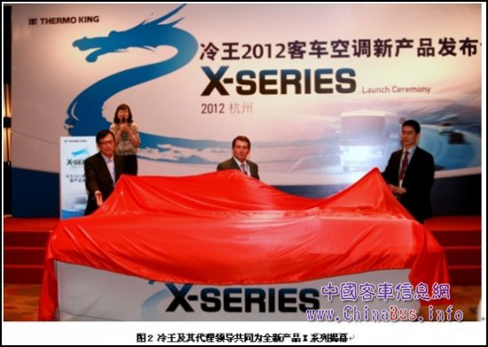 發(fā)布會(huì)在冷王亞太區(qū)銷售支持副總裁杜少林(Gabriel Doyle)熱情洋溢的致辭中拉開帷幕;隨后,冷王中國(guó)區(qū)銷售及服務(wù)總經(jīng)理崔景潭先生上臺(tái)致歡迎辭。接著是激動(dòng)人心的一刻——冷王2012客車空調(diào)新產(chǎn)品X系列揭幕儀式,伴著莊嚴(yán)隆重的音樂,冷王亞太區(qū)銷售支持副總裁杜少林先生、冷王中國(guó)區(qū)銷售及服務(wù)總經(jīng)理崔景潭先生、冷王浙江巴士空調(diào)總代理杭州佳雨制冷設(shè)備維修有限公司董事長(zhǎng)夏鈞先生走上舞臺(tái),共同揭開了全新產(chǎn)品X系列的神秘面紗。