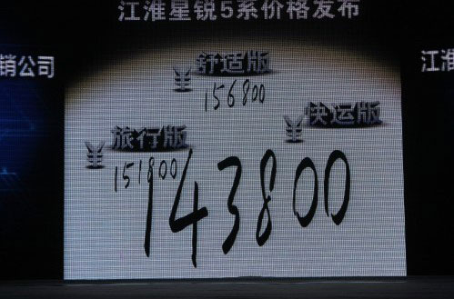 2012年9 月16日,江淮星銳“承前啟后”的產(chǎn)品----5系多功能商用車正式在蘇州上市,上市新車包括3個(gè)基本款:舒適版,旅行版和快運(yùn)版,售價(jià)14.38萬-16.58萬元。各種車型詳細(xì)價(jià)格,詳見下圖: