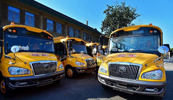 當日,由天津公交集團首次批量定制的14部中小學生專用校車抵達天津。這種校車長8米,除駕駛員和隨車照管員外,可搭載39名學生。前置發(fā)動機、車載視頻監(jiān)控系統(tǒng)、“安芯”智能管理系統(tǒng)、車廂尾部巡視按鈕等使這種校車的安全性大大提升。據(jù)介紹,天津公交集團將采取類似班車的學校專線模式運營,中途設(shè)站接送學生上下學。