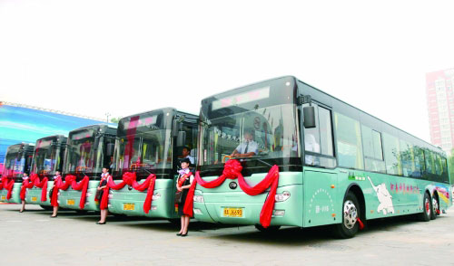 在十城千輛工程中,混合動(dòng)力客車占據(jù)絕對優(yōu)勢份額。本報(bào)資料片