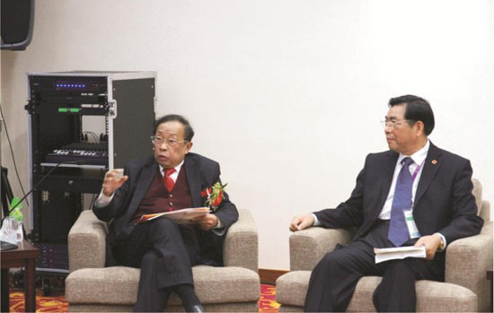 陳清泉院士(圖左)在澳門新能源科技論壇上發(fā)表精彩演講