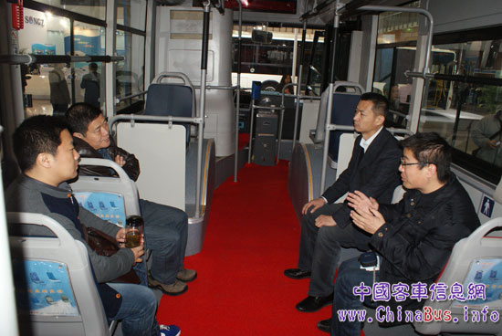中通客車副總經(jīng)理賈開(kāi)潛及技術(shù)人員向客戶介紹產(chǎn)品