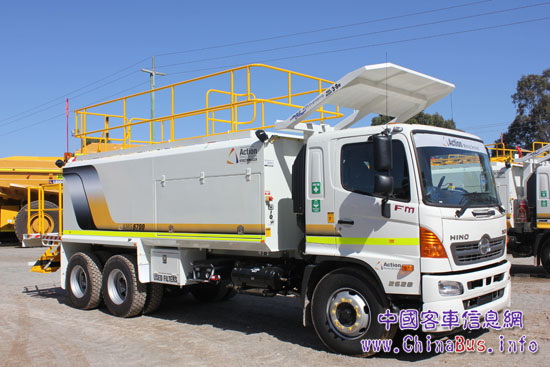 該公司采購(gòu)了140輛配置艾里遜3500R系列自動(dòng)變速箱的日野新車(chē)。在采礦公司、租賃集團(tuán)或礦區(qū)服務(wù)合同商購(gòu)買(mǎi)車(chē)輛之前,Action公司根據(jù)不同客戶(hù)礦區(qū)的具體情況,為這些日野卡車(chē)選配水箱模塊或礦區(qū)服務(wù)模塊。