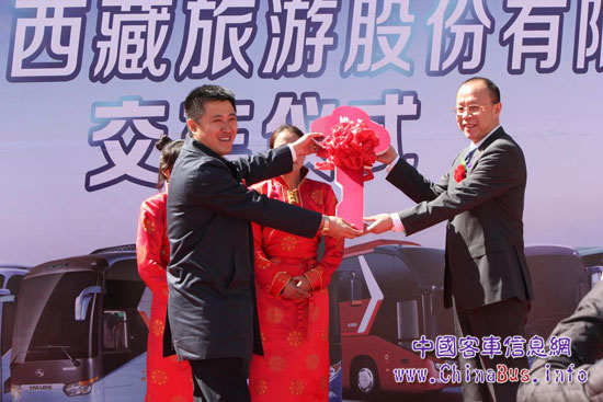 大金龍川渝大區(qū)經(jīng)理付曉波向西藏旅游公司副總裁張永智交接金鑰匙