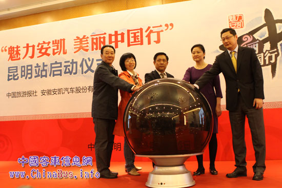 彩云之南我心的地方,孔雀飛去回憶悠長。4月16日,“安凱美麗中國行”活動在春城昆明隆重啟動。本次活動由安凱客車和中國旅游報社聯(lián)合主辦,以傳播綠色旅游文化,推進(jìn)綠色旅游裝備產(chǎn)業(yè)發(fā)展為宗旨。該活動將從昆明啟程,穿行中國最美風(fēng)景線和著名旅游城市,將綠色環(huán)保客車的魅力帶到祖國各地,并倡導(dǎo)和呼吁推進(jìn)綠色發(fā)展、循環(huán)發(fā)展、低碳發(fā)展的環(huán)保理念。這也是客車行業(yè)首次以產(chǎn)品為載體,在全國范圍內(nèi)進(jìn)行的一場具有重大影響力的環(huán)保倡議和推廣活動。