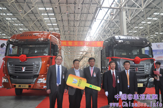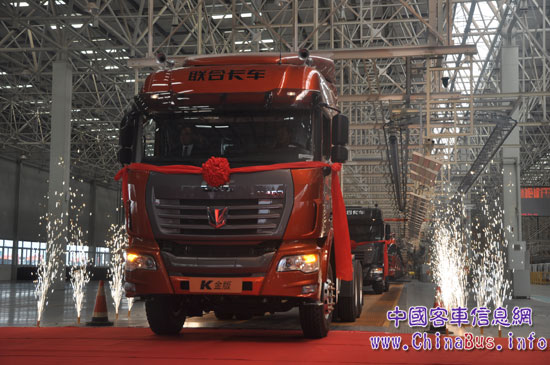 2013年4月12日,以“智匯新升 擎動(dòng)未來(lái)”為主題的聯(lián)合卡車K金版重卡首批產(chǎn)品下線儀式在聯(lián)合卡車總裝車間內(nèi)隆重舉行。聯(lián)合卡車、玉柴聯(lián)合動(dòng)力董事長(zhǎng)李胤輝、玉柴聯(lián)合動(dòng)力總經(jīng)理梁和平等領(lǐng)導(dǎo),以及經(jīng)銷商代表、員工代表、媒體代表共500余人出席儀式,共同見(jiàn)證了國(guó)內(nèi)首款13升LNG重卡及發(fā)動(dòng)機(jī)——聯(lián)合卡車K金版、玉柴聯(lián)合動(dòng)力6K13N隆重上市。