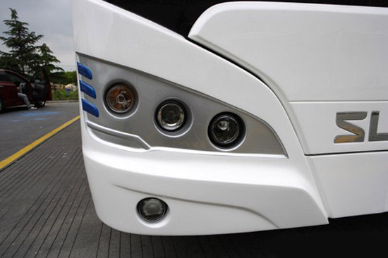遠(yuǎn)遠(yuǎn)地望去,申龍SLK6129USCHEV01白綠兩色的搭配給人一種清新的感覺,彰顯出混合動力車型環(huán)保清潔的設(shè)計理念。整車車身采用歐系方基調(diào)、小圓角、薄頂結(jié)構(gòu),流線型車身凸顯出簡潔的氣質(zhì)。從正面觀察,前臉造型穩(wěn)重大方,側(cè)面觀察又會發(fā)現(xiàn)其設(shè)計極富立體感,透露出動感活力。前擋玻璃采用流線型雙曲面設(shè)計,一方面降低了風(fēng)阻系數(shù),另一方面也保證了司機開闊的駕駛視野。前車燈采用集成式設(shè)計,鷹眼式框架下進(jìn)行獨立排放,增加了前臉的立體感。后視鏡與下視鏡組合也相當(dāng)簡潔大氣。車尾造型穩(wěn)重,凸顯出高貴氣質(zhì),尾燈線條簡潔大方,水晶質(zhì)燈罩不但保證了照明度,還提高了耐用度。