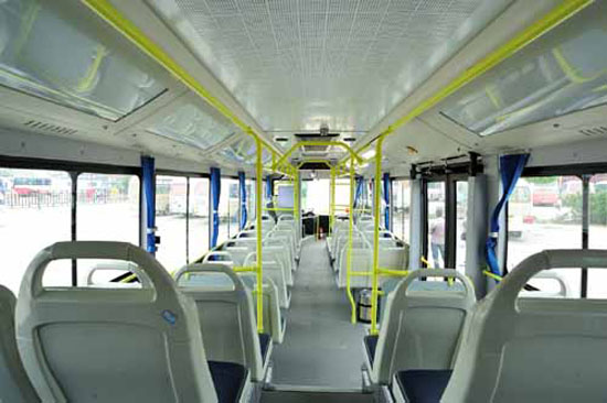 此次,省客運集團(tuán)選擇的揚子江LNG城市客車WG6120NHM4型,車廂內(nèi)部寬敞,內(nèi)飾清新,外形方正大氣,盡展歐洲風(fēng)格。該車長12米,設(shè)有42個座位,可載106人。車輛采用了合金空調(diào)風(fēng)道,送風(fēng)強(qiáng)勁、均勻;配備全軟高檔座椅,減少長途乘客的疲勞;裝備了具有防盜自動報警功能的安全錘;增設(shè)了駕駛員防干擾護(hù)欄;采用全景風(fēng)擋和3組內(nèi)外監(jiān)控鏡頭,使司機(jī)內(nèi)外視野更寬廣,減少安全行駛死角;安裝了窗簾固定卡扣,使窗簾不再來回滑動,觸碰乘客肌膚;全景黑化可推拉活動窗,既遮陽還可使乘客自由開關(guān)調(diào)節(jié);為保證車輛高速行駛安全,車輛配備有GPS導(dǎo)航系統(tǒng),時刻對駕駛員進(jìn)行語音提示,采用盤式制動裝置,提高剎車安全保障;采用揚子江SCR后艙溫控系統(tǒng),并配備自動滅火彈,有效控制后機(jī)艙高溫,防止高溫燃燒,確保行車安全。