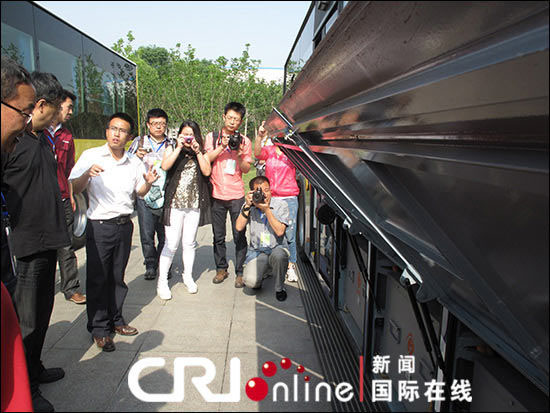 江淮工作人員向記者介紹安凱新能源客車的電池模塊