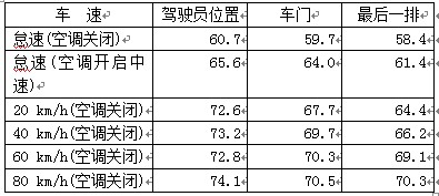 表2 金旅XML6700J68考斯特客車勻速行駛車內(nèi)噪聲測(cè)試 dB