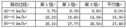 表3 金旅XML6700J68考斯特客車制動(dòng)距離測(cè)試 m