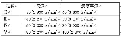 表5 金旅XML6700J68考斯特客車各擋位行駛車速 km/h