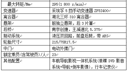 XML6700J68有多款不同功率的發(fā)動(dòng)機(jī)可以選裝,考慮到車輛的整備質(zhì)量較大,96 kW的ZD30功率偏小,295 Nm的轉(zhuǎn)矩也不是很突出。在起步階段,車輛的加速表現(xiàn)還相當(dāng)不錯(cuò),從0~40 km/h的加速時(shí)間基本在10 s可以完成,而且加速時(shí)發(fā)動(dòng)機(jī)的聲音沒有發(fā)生太大變化,隨著特性曲線的變化,中高速時(shí)發(fā)動(dòng)機(jī)轉(zhuǎn)矩開始下降,明顯感覺到從40~60 km/h,特別是60~80 km/h時(shí)發(fā)動(dòng)機(jī)的響應(yīng)要比初期緩慢,加速時(shí)間較長(zhǎng)。如果希望獲得更好的加速效果,可以選擇再增加5~10 kW功率的發(fā)動(dòng)機(jī)。另外,試駕車型采用的主減速比為5.375后橋也是造成加速時(shí)間較長(zhǎng)的一個(gè)原因,可能采用大速比后期主要是考慮車輛爬坡的需要,如果主要在城區(qū)行駛,選擇稍小速比的后橋也可以改變車輛的加速性能。