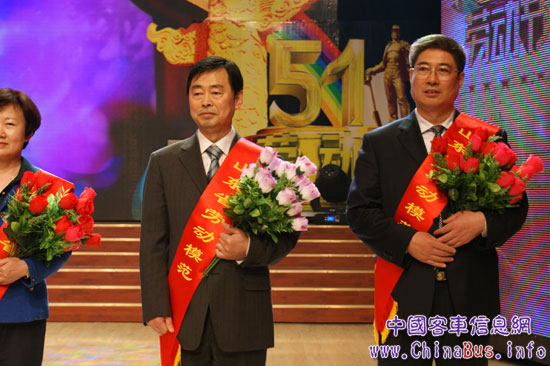 中通客車董事長李海平(中間)在勞動模范頒獎典禮現(xiàn)場