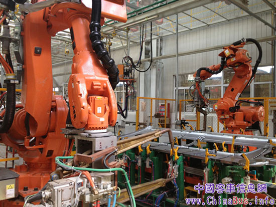 該廠的焊裝車間目前共有三條車身生產(chǎn)線,分別生產(chǎn)風(fēng)景、蒙派克E級(jí)、蒙派克S級(jí)三類產(chǎn)品。其中,蒙派克S級(jí)為全新設(shè)計(jì)開發(fā)的車型,包括寬體、窄體及右舵車型,涉及工裝500余套。據(jù)介紹,蒙派克S級(jí)車身生產(chǎn)線裝備了ABB公司焊接機(jī)器人,主線工位采用自動(dòng)步進(jìn)式輸送方式,處于世界領(lǐng)先水平。