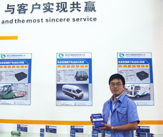 立塬公司市場部經(jīng)理田玉海先生在展示電容型鋰離子電池