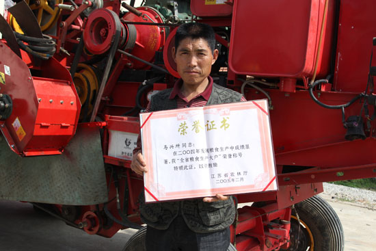 江蘇省連云港東海縣的馬興所在2013年種了200 hm2 (3000畝)的小麥,是當(dāng)?shù)赜忻姆N糧大戶。他從1979年就開始接觸農(nóng)業(yè)機(jī)械,30多年了用過多個(gè)品牌的機(jī)器,對(duì)農(nóng)業(yè)機(jī)械非常熟悉,稱得上是農(nóng)機(jī)老行家了。