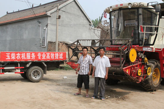 山東省菏澤市牡丹縣的辛義華是2013年初購買的收割機(jī),受到當(dāng)?shù)赜脩舻耐扑]配備了玉柴的發(fā)動(dòng)機(jī),嶄新的機(jī)器還未下過麥田。