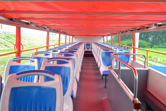 紅、黃色彩圖案的外觀設(shè)計,更顯大氣時尚,讓人不得不想起穿梭在英國大街上的“路主”。時尚的車燈組合,靈動的外觀設(shè)計,圓潤的棱角處理讓前臉看起來曲線飄逸,典雅。合理的空間布置,最大限制的利用車內(nèi)空間,擺脫雙層車擁擠的困擾。濰柴大馬力發(fā)動機、自動變速箱、空氣懸架系統(tǒng),讓此批車輛“動力十足”。開頂敞篷式設(shè)計、無線電多國語音系統(tǒng),更顯人文關(guān)懷。開頂敞篷式設(shè)計讓旅途的風景凈收眼底,讓乘客切身感受一個城市的魅力。尼日利亞對該車輛的造型和性能非常滿意 ,并表示將以此為契機,加大觀光市場的投入力度,將亞星雙層客車作為尼日利亞一道亮麗的風景線,開辟黃金旅游線路。相信亞星客車將會帶給乘客一個難忘的旅程。
