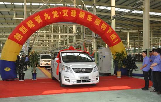 2013年7月16日,江蘇九龍汽車制造有限公司在揚(yáng)州舉行首臺九龍MPV產(chǎn)品艾菲新車下線儀式。揚(yáng)州市江都區(qū)地方政府領(lǐng)導(dǎo)、九龍汽車董事長俞洪泉、副董事長樊萬順、總經(jīng)理王榮法、副總經(jīng)理歐陽光、副總經(jīng)理劉金錠等出席剪彩儀式,隨著一輛珍珠白色的艾菲車緩緩駛下總裝線,九龍汽車開始邁向商務(wù)車發(fā)展的嶄新起點(diǎn)。