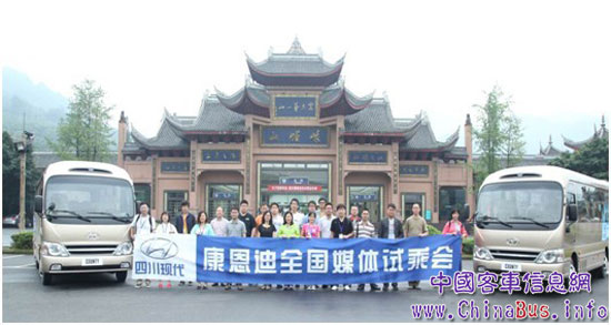 2013年7月18日-19日,在鐘靈毓秀的峨眉山,四川現(xiàn)代邀請(qǐng)了全國(guó)主要報(bào)刊、雜志和網(wǎng)絡(luò)等20多家主流媒體舉辦了隆重的產(chǎn)品說(shuō)明會(huì)暨媒體試乘會(huì),正式推出首款高端商旅巴士COUNTY康恩迪,在迤邐風(fēng)景中全國(guó)媒體親身體驗(yàn)了這款融合先進(jìn)科技、卓越品質(zhì)的高端商旅巴士。各地的媒體朋友對(duì)康恩迪給予了很高的評(píng)價(jià),均認(rèn)為,康恩迪的上市,成功樹(shù)立了中國(guó)高端商旅巴士新標(biāo)準(zhǔn),更是四川現(xiàn)代邁入中國(guó)高端商用車市場(chǎng)的重要象征。