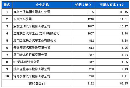 2013年6月輕型客車企業(yè)銷量前十排名