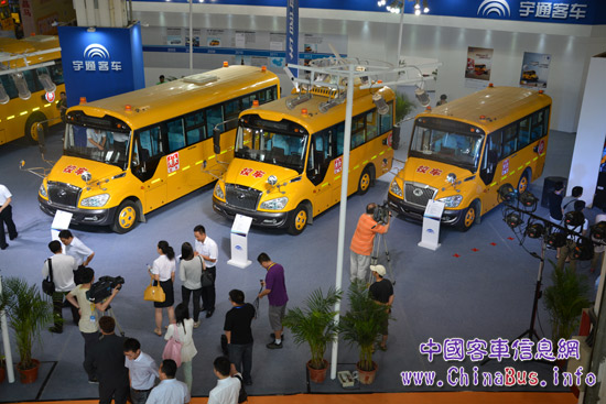 此次展會,宇通校車此次攜帶ZK6559DX5、ZK6809DX6、ZK6609DX7、ZK6119DX四款第二代新國標車型參展。這些車型憑借領(lǐng)先業(yè)界的宇通校車360°安全系統(tǒng)解決方案,為學(xué)童提供完善的主、被動安全保障。宇通第二代校車在安全產(chǎn)品、安全管理、安全教育和無憂服務(wù)四個方面進行全新升級,有效保障校車安全。安全產(chǎn)品方面,宇通校車在骨架強度與密度、車體結(jié)構(gòu)、360度環(huán)視系統(tǒng)等多個方面超越新國標,其中骨架采用強度高、密度輕的高強度鋼,并以0.8米的骨架間隙顯著高于1.0米的新國標;安全管理方面,宇通校車搭載獨有的安芯智能管理系統(tǒng),可有效實現(xiàn)對校車運行狀態(tài)的全面監(jiān)控,而且在導(dǎo)航定位功能方面可提供GPS和北斗兩種版本的安芯產(chǎn)品供用戶選擇;安全教育和無憂服務(wù)方面,宇通校車聯(lián)合中國人保從2013年3月25日起開始為每輛校車的學(xué)生座位贈送每座高達30萬元的承運人責任險,安全更貼心。同期啟動的“宇通360°校車安全行”的市場專項服務(wù)活動,為廣大宇通校車用戶提供免費檢查,向客戶免費發(fā)放近2萬冊(頁)的安全手冊和宣傳頁,并對廣大校車駕駛員進行現(xiàn)場安全駕駛指導(dǎo)和校車日常維保的專業(yè)培訓(xùn),還通過逃生演練視頻、安全教育手冊等多種手段進行教育培訓(xùn),提升相關(guān)人員的安全意識。