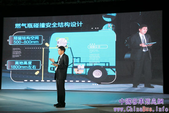 福田歐輝客車(chē)事業(yè)部副總經(jīng)理劉國(guó)強(qiáng)通過(guò)AR展現(xiàn)做LNG安全系統(tǒng)技術(shù)