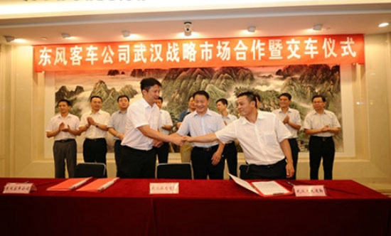 當(dāng)天,東風(fēng)客車公司攜雷諾、史密斯、格特拉克的在漢企業(yè)與武漢市汽車通勤商會(huì)簽訂并交換了首次戰(zhàn)略合作意向協(xié)議書,活動(dòng)現(xiàn)場(chǎng)簽下首批30臺(tái)通勤客車的訂單。