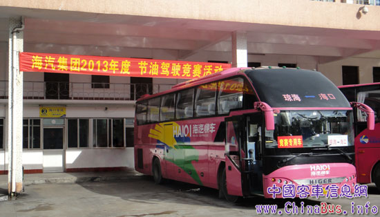為了保證比賽有一個(gè)公平、公正的平臺(tái),從預(yù)賽階段開始,組委會(huì)決定選擇在公司運(yùn)營(yíng)中穩(wěn)定性、節(jié)能性俱佳,并能監(jiān)控駕駛員油耗和操作水平的海格KLQ6125B1A型快車作為比賽用車,由瓊海分公司提供,比賽線路規(guī)定為瓊海汽車站——海口汽車東站。