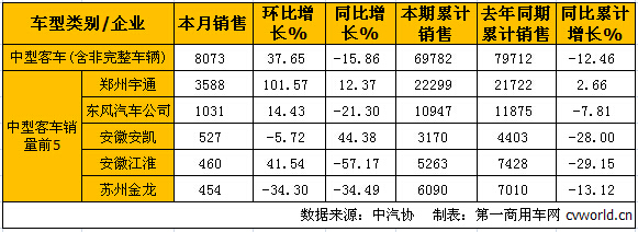 中型客車銷量情況:
