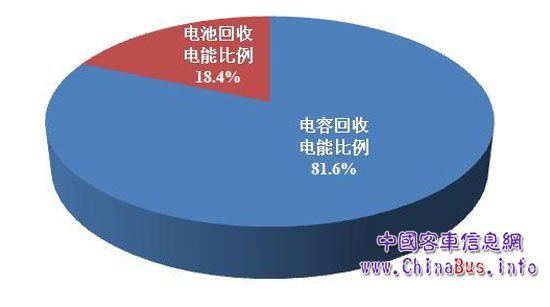 松正4代系統(tǒng)采用電池+電容的雙電源、雙繞組發(fā)電機(jī),制動時根據(jù)實際工況及電源電量情況實時調(diào)配電池和電容的回收能量,由上圖的電池和電容回收電能比例可以看出,電容回收了制動過程中產(chǎn)生的81.6%的電能,而電池只回收了其中的18.4%,說明制動時大部分時間由電容回收動能,這樣既能利用電容的快充能力盡可能回收動能,又能保證電池的小電流充電,延長電池壽命。