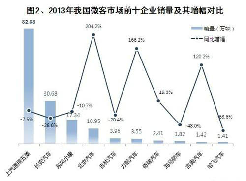 微客生產(chǎn)企業(yè)及車型市場表現(xiàn)不佳也是一方面因素。2013年,微客市場銷量前十企業(yè)依次是上汽通用五菱、長安汽車、東風(fēng)小康、北京汽車、吉林汽車、力帆汽車、奇瑞汽車、海馬轎車、吉奧汽車和哈飛汽車。