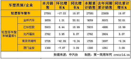 輕型客車整車銷量情況: