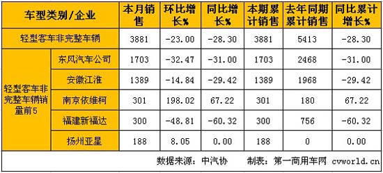 輕型客車非完整車輛銷量情況: