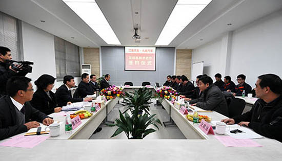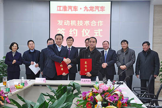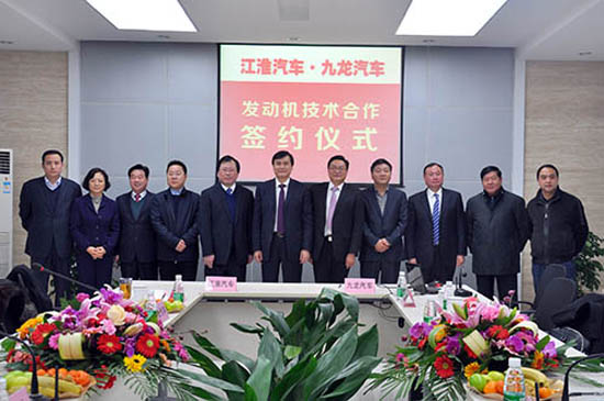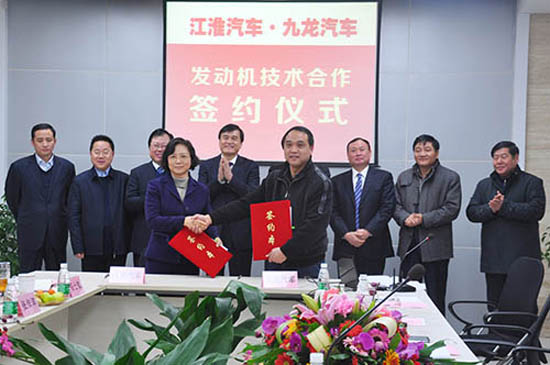 2014年2月16日,江蘇九龍汽車制造有限公司與安徽江淮汽車集團有限公司在揚州市隆重舉行“九龍與江淮發(fā)動機技術合作簽約儀式”。江蘇九龍汽車制造有限公司董事長俞洪泉先生、安徽江淮汽車集團有限公司董事長、黨委書記安進先生,以及揚州市江都區(qū)區(qū)委書記蔣愛祥先生、區(qū)委副書記、區(qū)長馬順圣先生、副區(qū)長李杰先生和區(qū)委辦、區(qū)政府辦、仙城工業(yè)園區(qū)領導共同出席了簽約儀式。