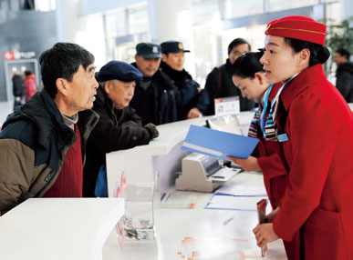 “我們這套航空禮服都是專門定做的,共有17名迎賓服務(wù)人員分布在總臺(tái)、自動(dòng)售票區(qū)、候車廳、到站樓、地下停車場(chǎng)等區(qū)域,為乘客提供導(dǎo)乘、問詢等溫馨服務(wù)!庇e服務(wù)班班長(zhǎng)馬慧介紹說,為了向廣大乘客送上最迷人的微笑,她還自創(chuàng)了一套3分多鐘的“微笑禮儀操”,每天8點(diǎn)50分和15點(diǎn)50分,車站全體員工集體做操。1月8日新上崗的17名迎賓服務(wù)小姐都經(jīng)過精心挑選,平均身高都在1.6米以上,除班長(zhǎng)外,均為清一色“80后”年輕女員工。