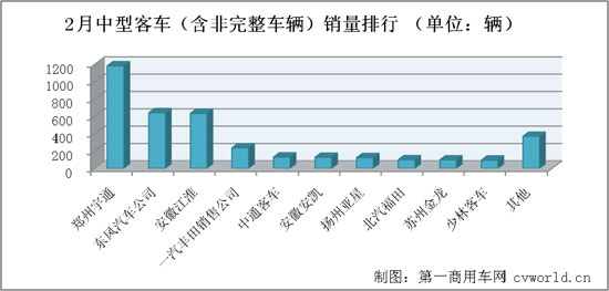 2014年2月中型客車(含非完整車輛)銷量排行(單位:輛)