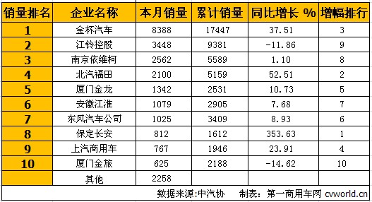金杯繼續(xù)居首 2月輕型客車銷量排行前十