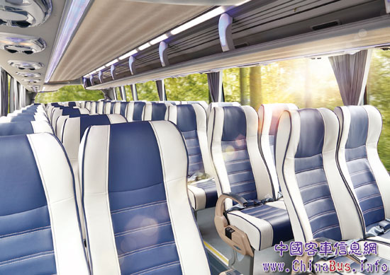 打開車門,進(jìn)入車內(nèi),駕駛區(qū)的布局一目了然,坐在駕駛員座椅上體驗(yàn)了一下,這種下沉式設(shè)計(jì)通過頂部的大坡度變化,滿足了駕駛區(qū)域的空間高度要求,大幅面前風(fēng)擋玻璃增加了駕駛員的前上方視野,不會(huì)給長(zhǎng)時(shí)間駕駛帶來壓抑感。進(jìn)入乘客區(qū),一種豁然開朗的感覺油然而生。這種感覺既自于2 m的車內(nèi)高度,更是因?yàn)檐噧?nèi)營(yíng)造的溫馨舒適的氛圍。盡管天氣有些陰沉,但兩側(cè)寬大的車窗還是為車廂內(nèi)帶來了很好的采光效果。藍(lán)白相間的座椅與行李架燈帶形成呼應(yīng),靜謐而柔和。車廂頂部的2個(gè)采用透明材料的超薄天窗更值得稱道,無(wú)論是白天還是夜晚,乘客都可以借此仰望頭頂?shù)奶炜,去享受片刻的遐想帶來的寧(kù)o。