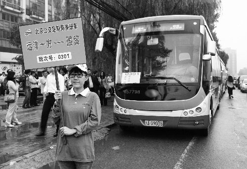 圖為北京定制公交在候車點(diǎn)等待乘客。