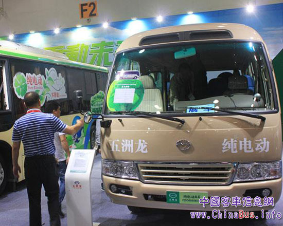 五洲龍首次亮相的FDG6620EVG的6米級(jí)純電動(dòng)城市客車(chē)(小巴)現(xiàn)場(chǎng)極具人氣