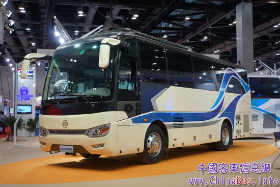 XML6102凱歌10米一層半客車同樣展示了廈門金旅的實(shí)力。金旅相關(guān)人員告訴記者:“其為目前國內(nèi)車長最短、車高最低的一層半車型,擁有高一級51座,行李艙8.5個立方的運(yùn)載能力,營運(yùn)效益等同12米車型!