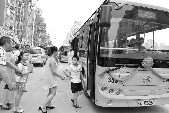 上午9點,金銀湖路公交停保場內(nèi)鑼鼓喧天,翠堤春曉東區(qū)居民自發(fā)組織鑼鼓隊,慶祝公交通車。9點20分,一輛353路綠色小公汽從該停保場出發(fā)(如圖),年過70的邱友珍老人第一個上車,“以前想去后面的常青公園遛個彎還要打的去,如今公交車通到家門口,太好了!